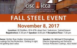 On Nov 8, 2017, CISC Saskatchewan region hosted their Fall Steel Event in Saskatoon’s Lucky Bastard Distillery. A crowd of 50 CISC members & associates and industry guest thoroughly enjoyed the featured speaker, Dr. Michael O’Donoghue from International Paints/AkzoNobel. Dr. Mike, as he is known in the industry, discussed the finer details of intumescent fire protective [...]