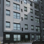 These designs are characterized by their linear shadow patterns. They vary greatly in the spacing and the design of the ribs or standing seams. These seams vary from flat, hidden seams to wide battens. There is a variety among manufacturers as to the design and the anchoring systems. The height and width of these standing ribs, as well as their colour will express a broad spectrum of aesthetic expressions.